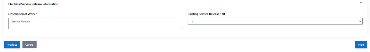 Fill in Description of Work and Select 1, 2, or 3 for Existing Service Release