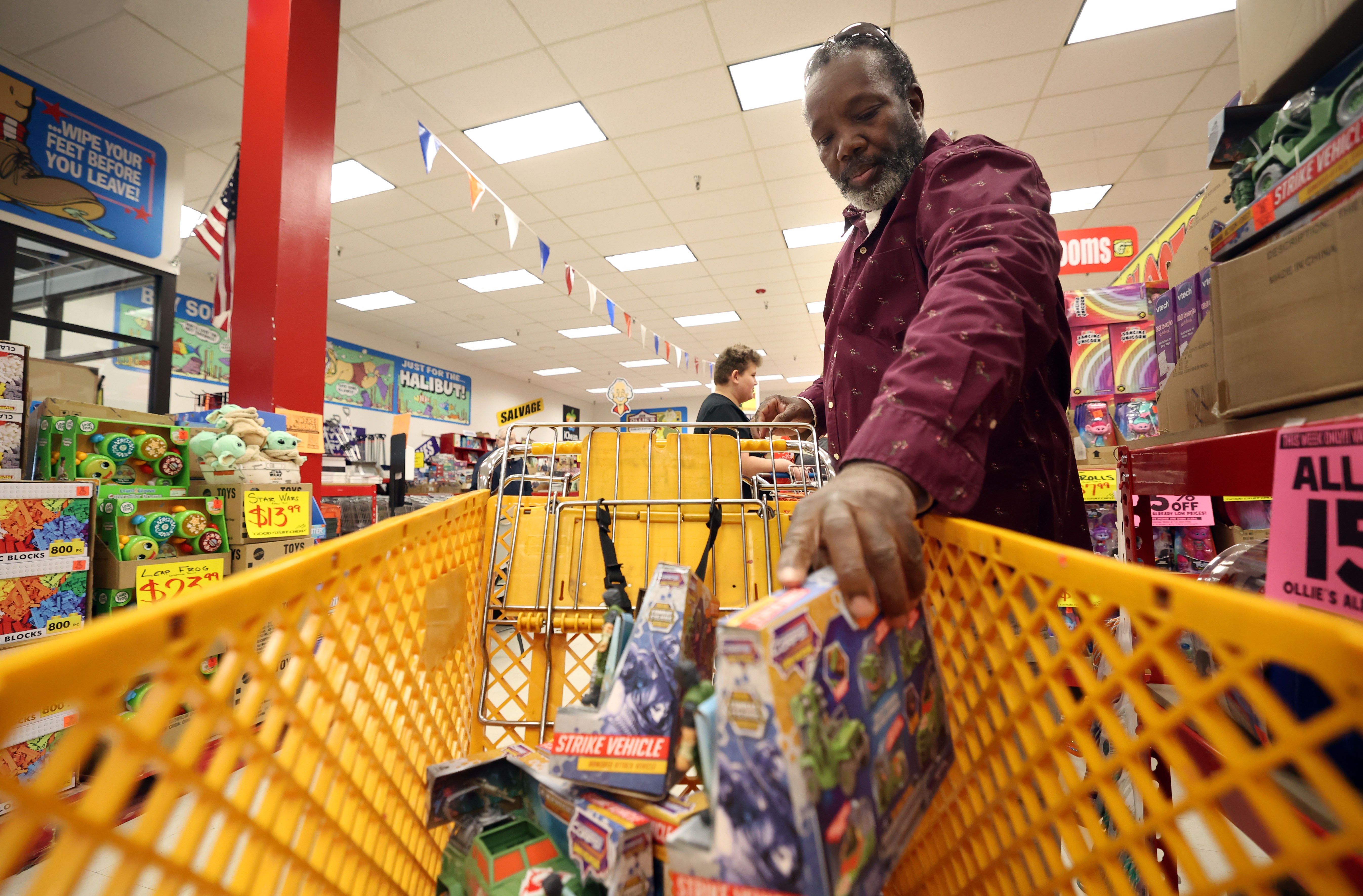 Paul Cooper, with the City of Toledo fleet operations, planned on buying out the whole toy department in Ollie’s Bargain Outlet to make sure no child goes without a gift to open this holiday season.