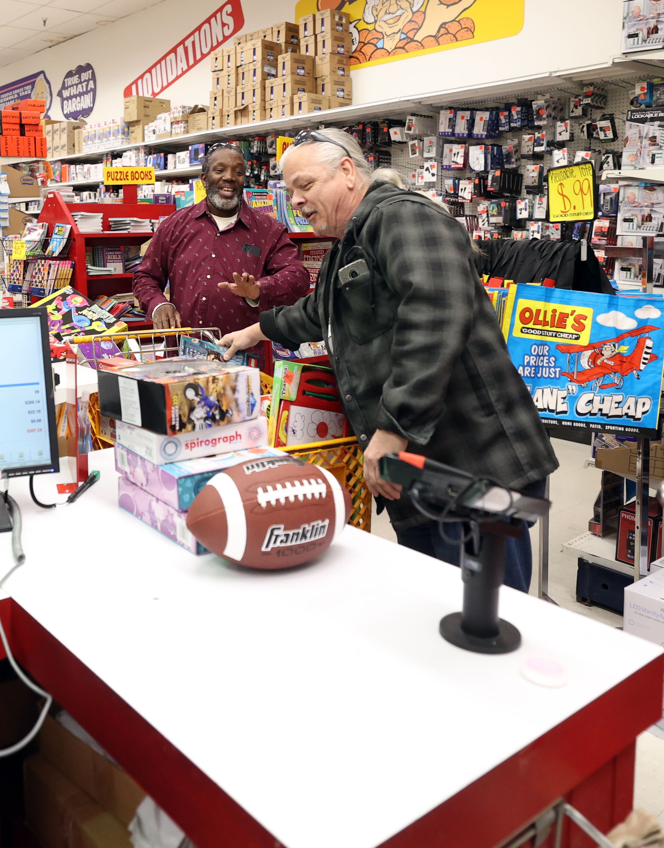 Cooper had tears in his eyes at Ollie’s as he unloaded cart after cart of toys and put them on the conveyer belt bound for the checkout.