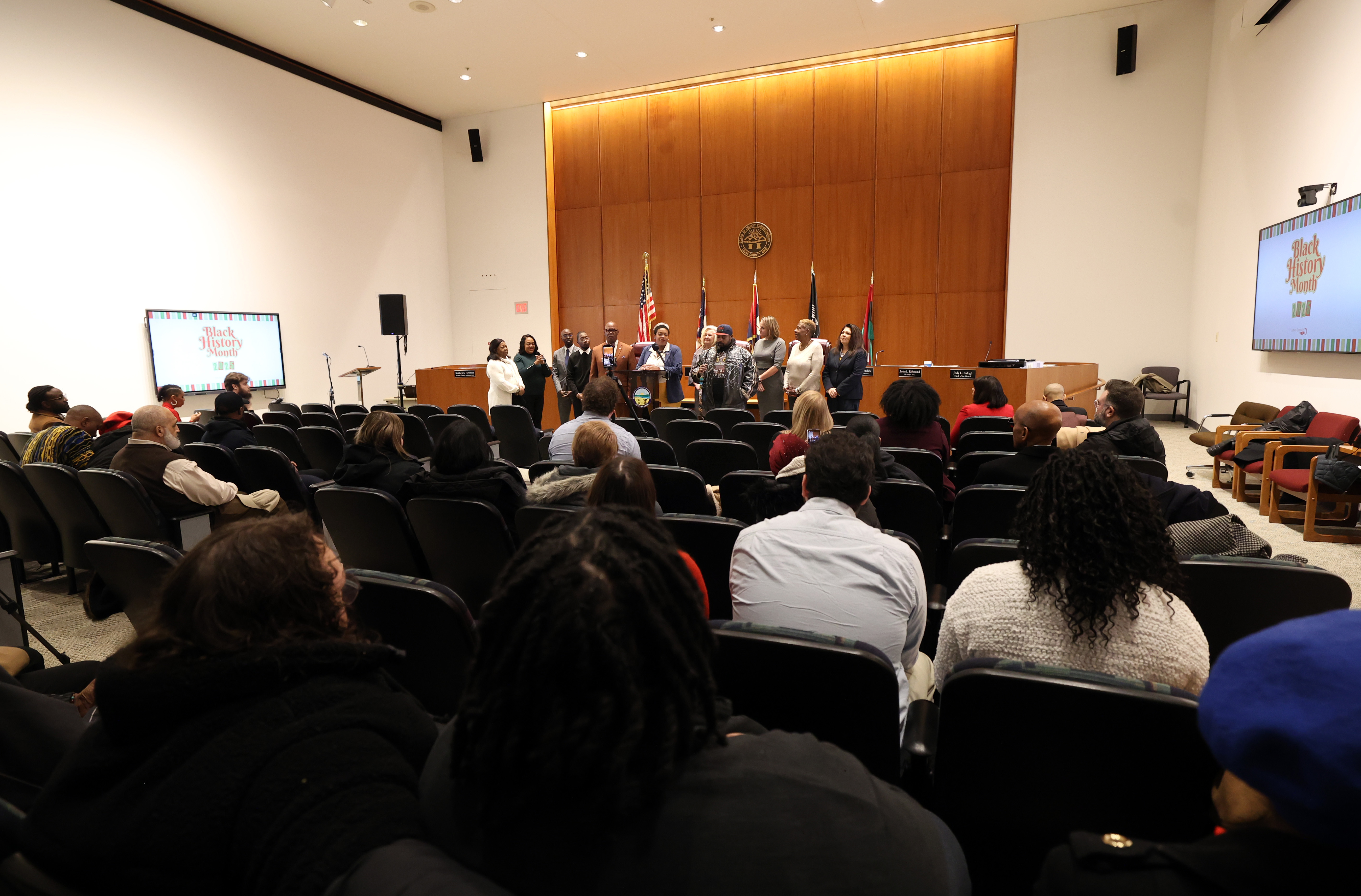 The Black History Month program at Tuesday’s Commissioners’ meeting began with Dr. Tracee Perryman singing the Black National Anthem. The Board then heard remarks from: