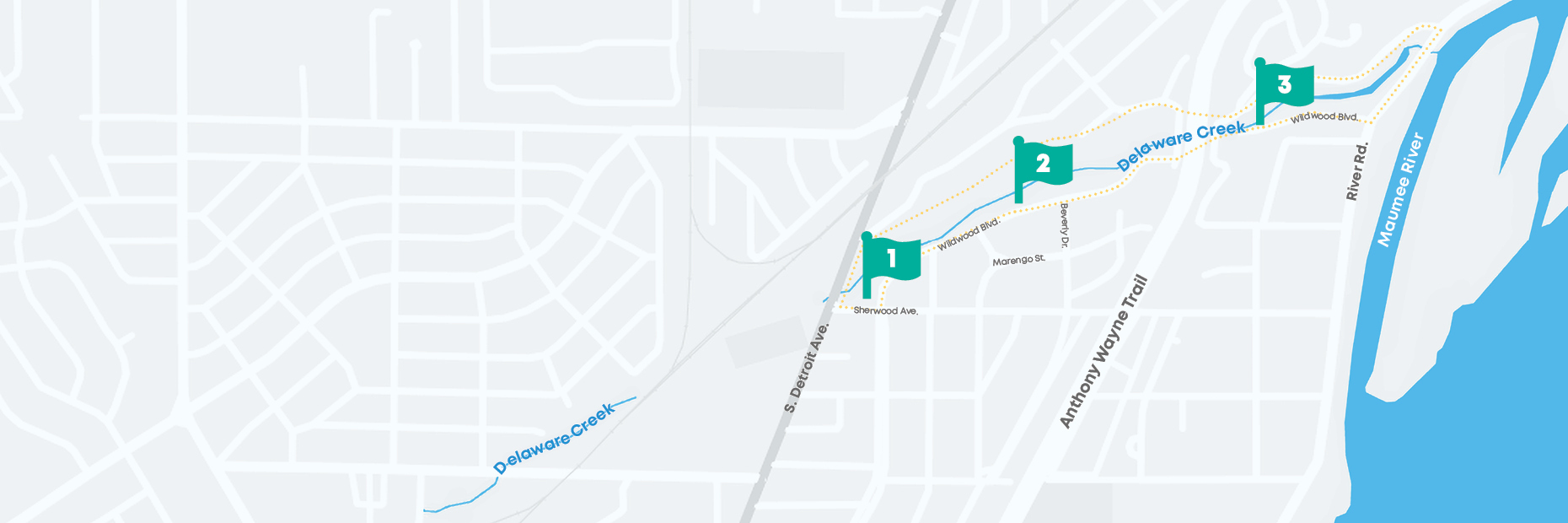 Rain gardens and bioswales, completed in 2020, work to fix erosion problems, reduce runoff, and improve water quality and habitat. Delaware Creek is a 1.8-mile stream that drains five square miles. It enters the Maumee River at river mile 9.2.